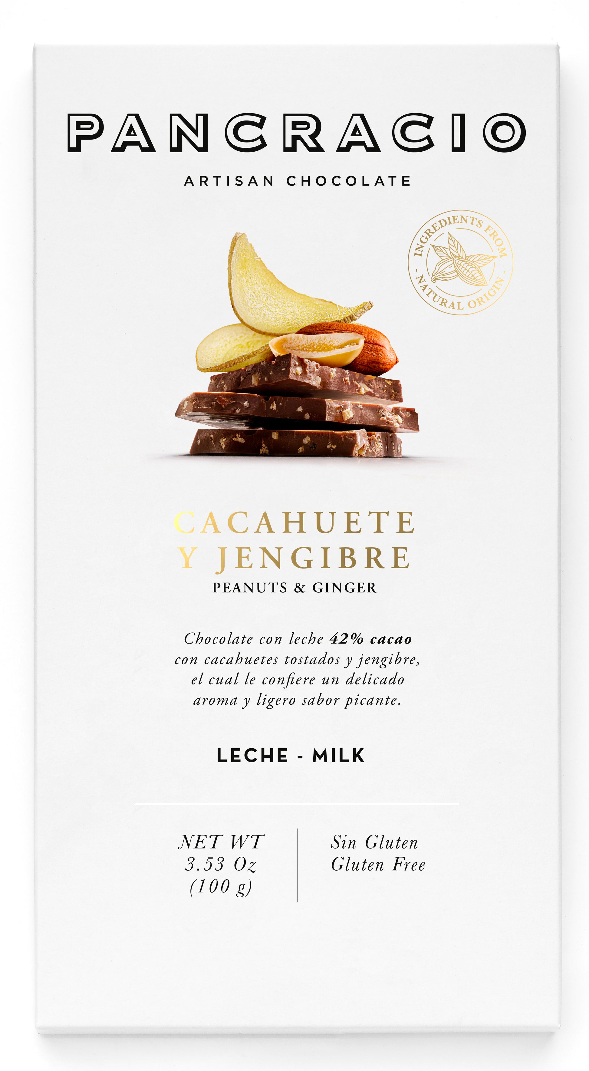 Занаятчийски шоколад PANCRACIO 100гр. - млечен с фъстъци и джинджифил