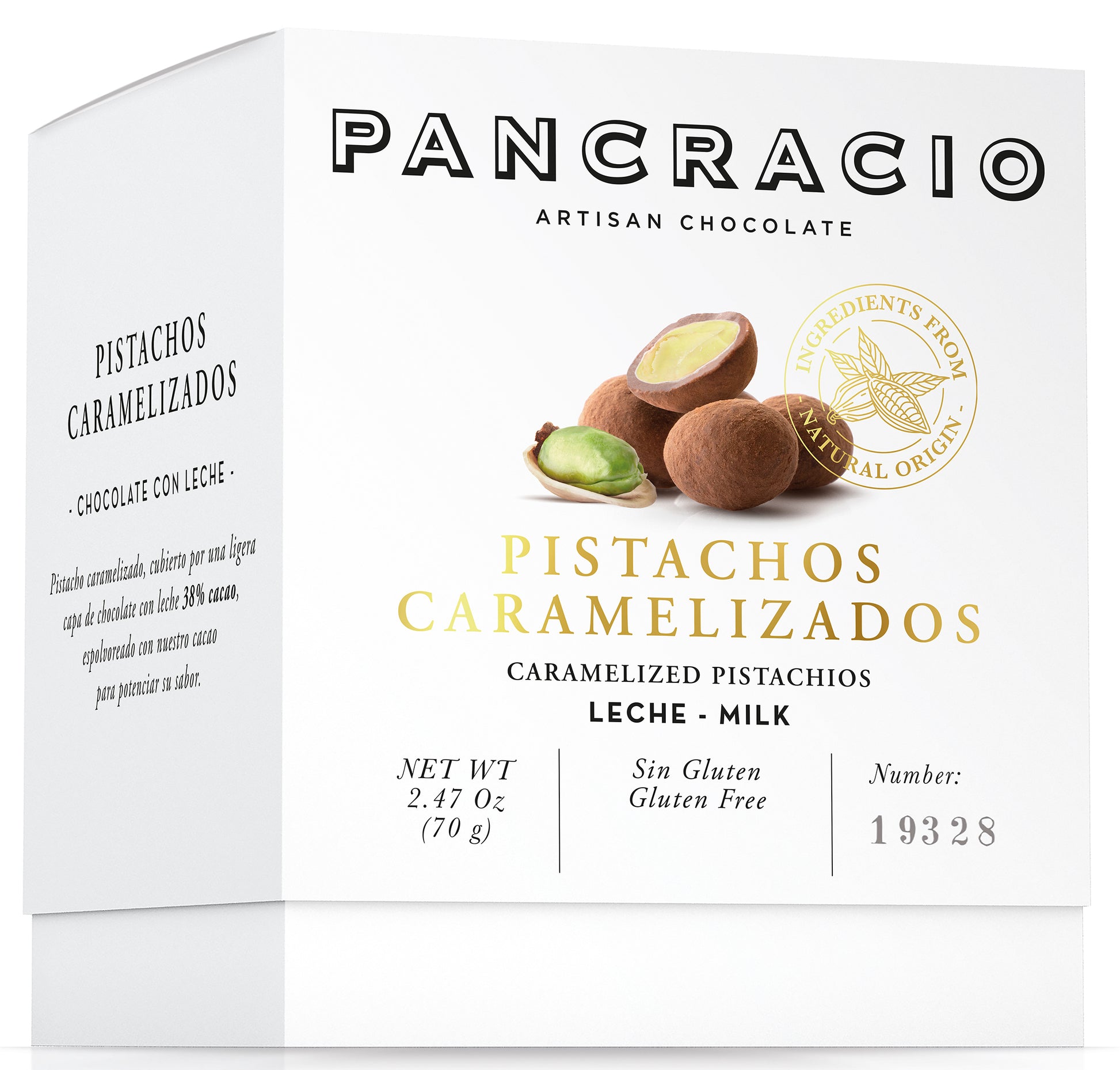 Шоколадови бонбони PANCRACIO с карамелизиран шамфъстък - млечен шоколад 70гр.